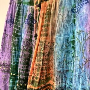 Charlie Paige Vintage Indian Size L/XL Midi Skirt Boho Flowy Crinkle Multicolor