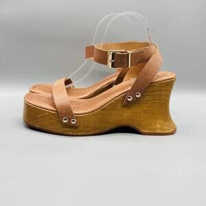 Schutz Sandals Womens 11 Brown Leather Wedge Platform Wood Heel Ankle Strappy