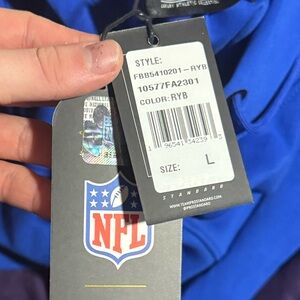 Vibrant royal blue hoodie with NFL branding. Comfortable and stylish.