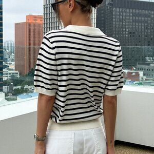 Black and White Casual Women's Striped Pattern Knit Top