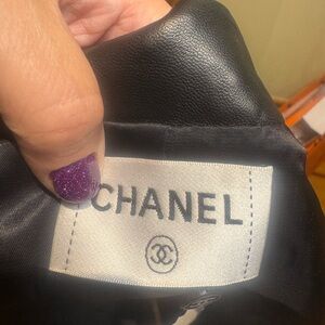 CHANEL black Leather Jacket with Floral Embroidery Sz L