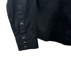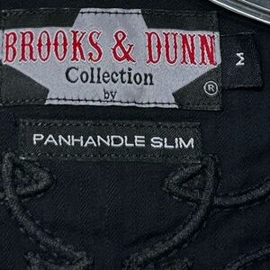 Brooks & Dunn Collection by Panhandle Slim Black long sleeve with Snap Closures and Decorative Embroidery and Rhinestones Western Shirt. This shirt is sharp black but some of my pictures look grey because I’m not a professional photographer…