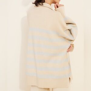 Free People Coastal Stripe Half-Zip Pullover in Beige and Light Blue