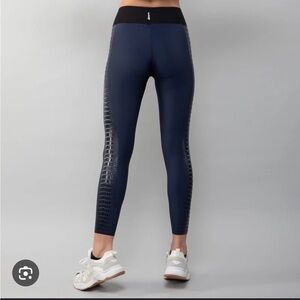 Sleek and stylish navy leggings for active wear. Features a unique crocodile side pattern. Ideal for workouts or casual outings.