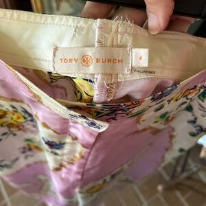 Tory Burch Chic pastel pink pants with floral design. Silk, wide leg, the waist was let out just a tad. Posting measurements