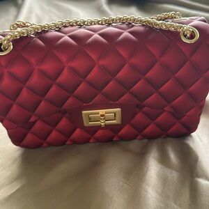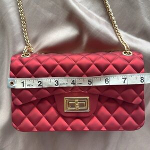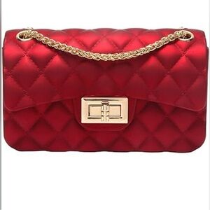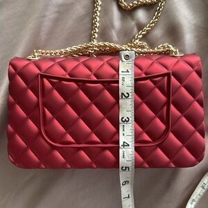 Le Miel Jelly Rubber Shoulder Bag Clutch Quilted Iridescent Red Gold Chain Strap