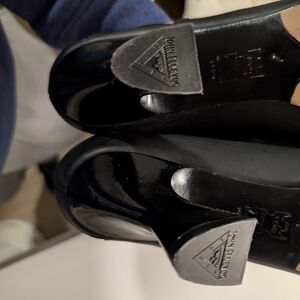 Leather wrapped 3" heel with a thermoplastic heel lift
