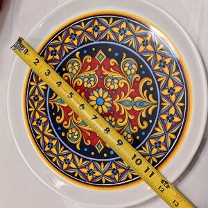 Beautiful and vibrant floral/geometric pattern, no scratches and in excellent condition. There is one tiny chip on the underside ridge of the platter. Refer to photo, it's very minor and doesn't affect it in any way.