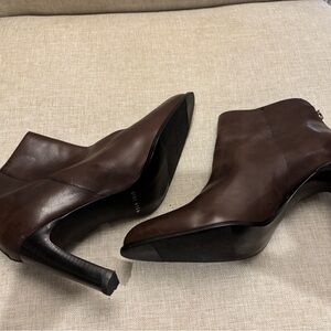 Vintage Nine West Espresso Brown Genuine Leather Ankle Heel Boots 90s Office