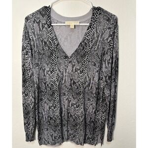MICHAEL Michael Kors Womens M Long Sleeve Snake Print V Neck Top Gray Black