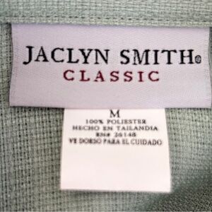 Chic and timeless Jaclyn Smith Classic 2-piece matching suit set in a soft mint/sage green. This set includes a button-front blazer-style jacket and tailored trouser pants (note: top & bottom are different tag sizes, listing lists “small” since most blazers are worn larger on top for layering).