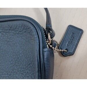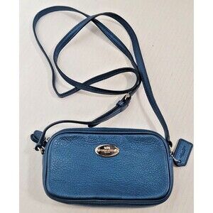 EUC Coach 53372 Blue Metallic Pebbled Leather Mini Crossbody Bag Wallet Purse