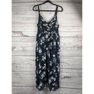 Torrid Maxi Dress Black Blue White Floral Adjustable Strap Ruched Bust