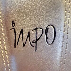 Impo brand red wedge sandals feature a faux patent leather upper with decorative silver medallions. Designed for women, these sandals have a mid-height wedge heel and a side buckle closure. The synthetic outsole and lining make them suitable for versatile occasions. Manufactured in China, they are available in US size 8.5 with a medium width. Pre-owned condition.