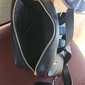 Stylish black backpack with gold accents. Ideal for everyday use. Durable and fashionable.