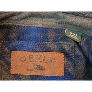 Orvis Shirt Mens 2XL Blue Plaid Flannel Button Up Long Sleeves Heavyweight Hand pockets on the side