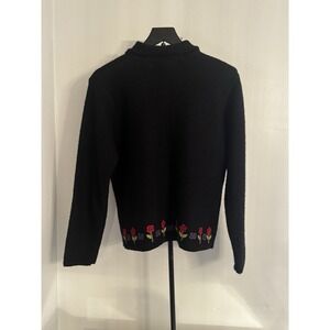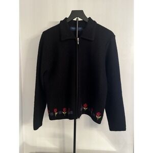 Karen Scott M Pure Wool Black Floral Embroidered Zip Jacket Sweater Australia. Condition is Pre-owned - Excellent. Shipped with USPS Ground Advantage.
