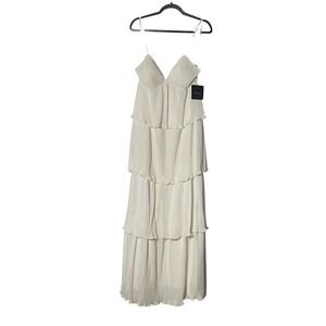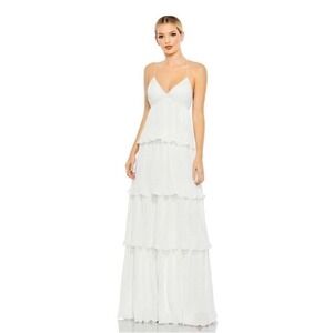 Ieena Mac Duggal 49083 White Tiered Ruffle Maxi Gown Sz 10 NWT Bridal Wedding Reception Rehearsal