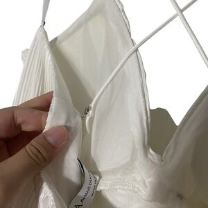 Ieena Mac Duggal 49083 White Ruffle V-Neck Spaghetti Strap Maxi Gown Size 10