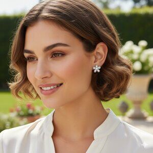 Elevate your style with our Enchanting Collection. These stunning white earrings feature a flat disc back and a secure Enchanting Flower Post closure, ensuring both elegance and comfort. The beautiful drop adds a touch of sophistication to any outfit.