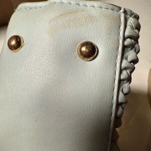 Elevate your style with this chic Bebe woven shoulder bag. Featuring a sophisticated light blue with gold hardware design complemented by elegant gold accents, this bag is perfect for any occasion. The luxurious texture and stylish details make it a must-have accessory.