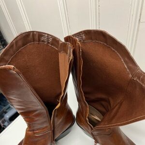 Floral Embossed Leather Tall Cowboy Boots Cognac Brown Size 8| Cottage Cabincore