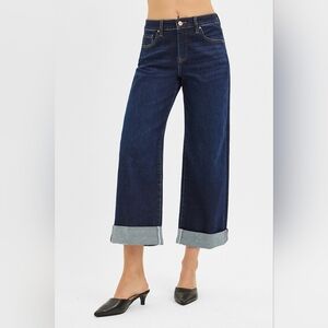 RISEN Mid Rise Deep Dark Wash Wide Leg Rolled Cuffed Ankle Jeans Various NEW