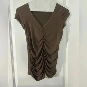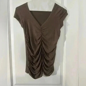 I wore this as a business casual top, it’s tight fitting and very flattering. I’m not pregnant but I love their clothing! So flattering & comfy!