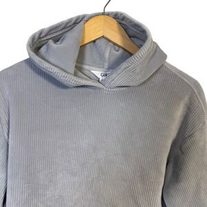 Athleta Girl Large Hoodie 12 Gray Ribbed Velour Cropped Sweatshirt Pullover