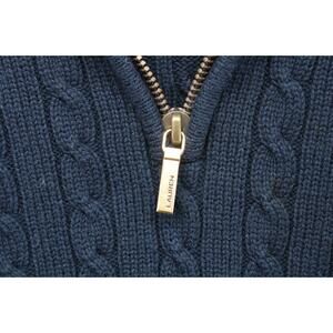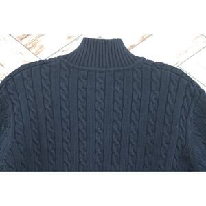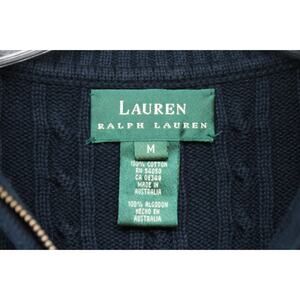 VTG Lauren Ralph Lauren Sweater Women's Large Blue Crest Logo 1/4 Zip Cable Knit