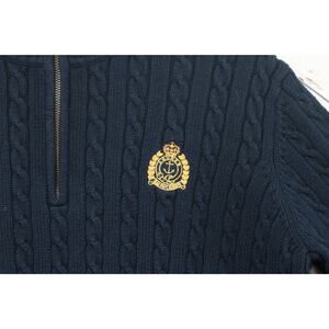 Vintage Lauren Ralph Lauren Sweater Women's Large Blue Crest Logo 1/4 Zip Cable Knit