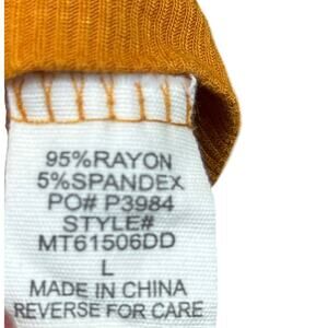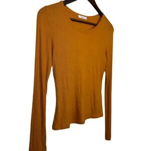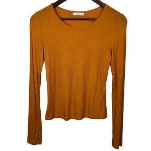 Soft ribbed long sleeve top in a warm mustard / rust tone. Stretchy, fitted silhouette with a classic crew neckline. Easy everyday piece—perfect for layering or wearing on its own. Gently used, no flaws.