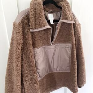 H&M Brown Boucle Quarter Zip Pullover Sweater Women's Size Large