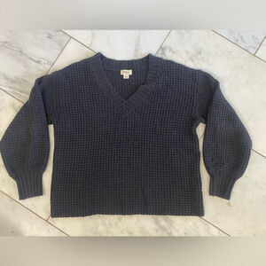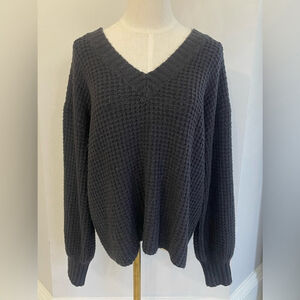 UpWest, Medium, charcoal gray waffle knit super soft puff sleeve v-neck sweater