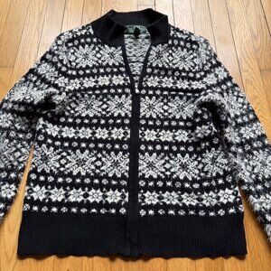 Fair Isle Lauren Ralph Lauren Active Size XL Black White Full Zip Cardigan