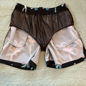 In great condition! No flaws on shorts or lining. One of the drawstrings got caught in the dryer, so there is damage and a mark from it. Does not affect use. Zipper pocket in back. Bundle and save! Reasonable offers welcome!