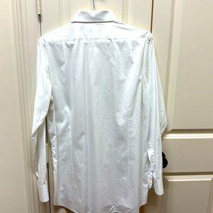 Elevate your wardrobe with this classic white dress shirt. Perfect for any formal occasion, this shirt offers a sleek and sophisticated look.