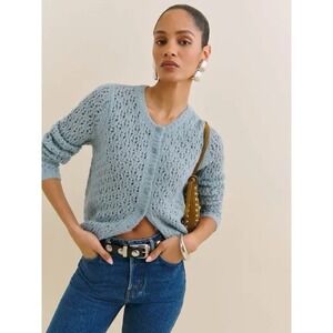 Reformation Medium Clara Merino Wool Alpaca Mineral Pointelle Blue Knit Cardigan