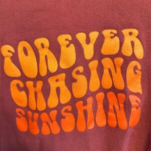 Women’s zip up beach hoodie “Forever Chasing Sunshine” logo on the back. Size M
