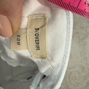 Madewell women’s Stovepipe jeans in classic white, size 20W. Flattering high-rise fit with a straight stovepipe leg silhouette. Made from comfortable stretch denim (cotton/polyester/elastane blend) for structure with ease of movement. Five-pocket styling with zip fly and button closure. Versatile wardrobe staple—easy to dress up or down for casual, work, or everyday wear. Good pre-owned condition with light signs of wear consistent with normal use.