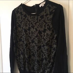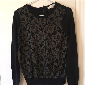 LOFT Holiday Floral sweater Black Metallic Gold sz Medium