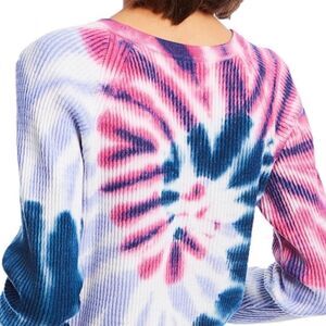 Details: A long sleeve tie dye ribbed knit sweater. Luxurious knitted feel. So comfy and trendy. material is Viscose and Nylon.