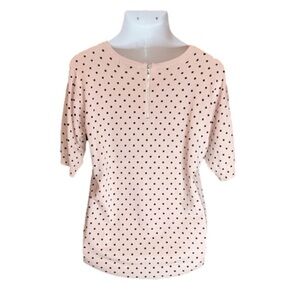 CABLE & GAUGE Peach/Pink Lightweight Short Sleeve Sweater w/ Black Polka Dots Size L