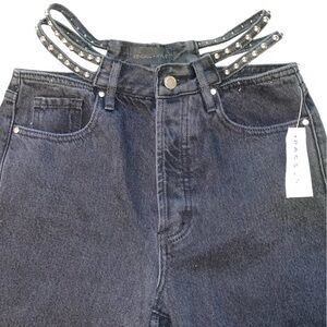 Kendall & Kylie Gray Straight Leg Jeans with Studded Waist Straps