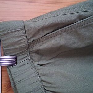 New with tags. A great cotton short with large back pockets and 2 side pockets. Army green color with elastic waist and draw string for a perfect fit. flat measurements Waist 16.5in, rise 10in, Length 13.5in
