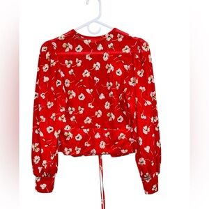 Elevate your style with this elegant red floral blouse, perfect for any occasion.