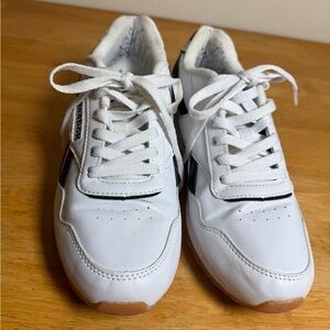 Reebok Glide Sneaker White Black Womens 8.5 Athletic Shoe. Outside of shoe in great condition, inside has black fuzzies.