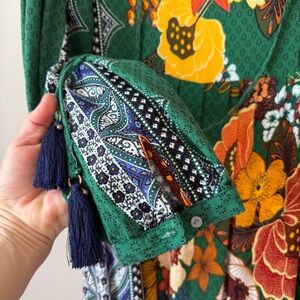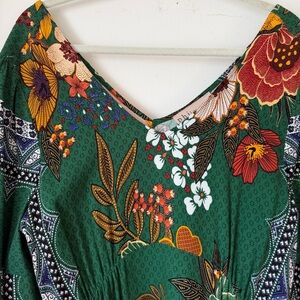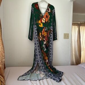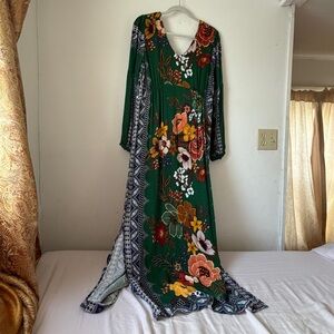 Philosophy size 12 green maxi dress with long sleeves and floral design