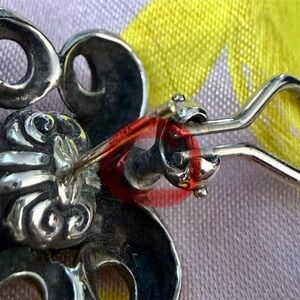 @seaside21 Hello!! I’m working on it right now!!! I’m adding a couple photos of the back of the earrings. I know 100% the stamp is there, I’m trying to get into some of the tight tarnished spots to get it. The 14K and 925 are clear(er). I will message you as we continue to delicately clean. I think the detail in the back is also helpful. I’ll be in touch again shortly!!