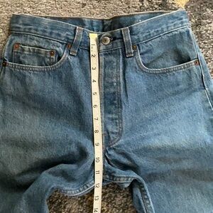RAD vintage 80s Levi’s. Slight cosmetic wear throughout including some slight discoloration at the seat and sweet front fades. There are small white spots and bits of slub throughout the denim. I did my best to capture the most obvious ones, but please look over the pics for overall condition.